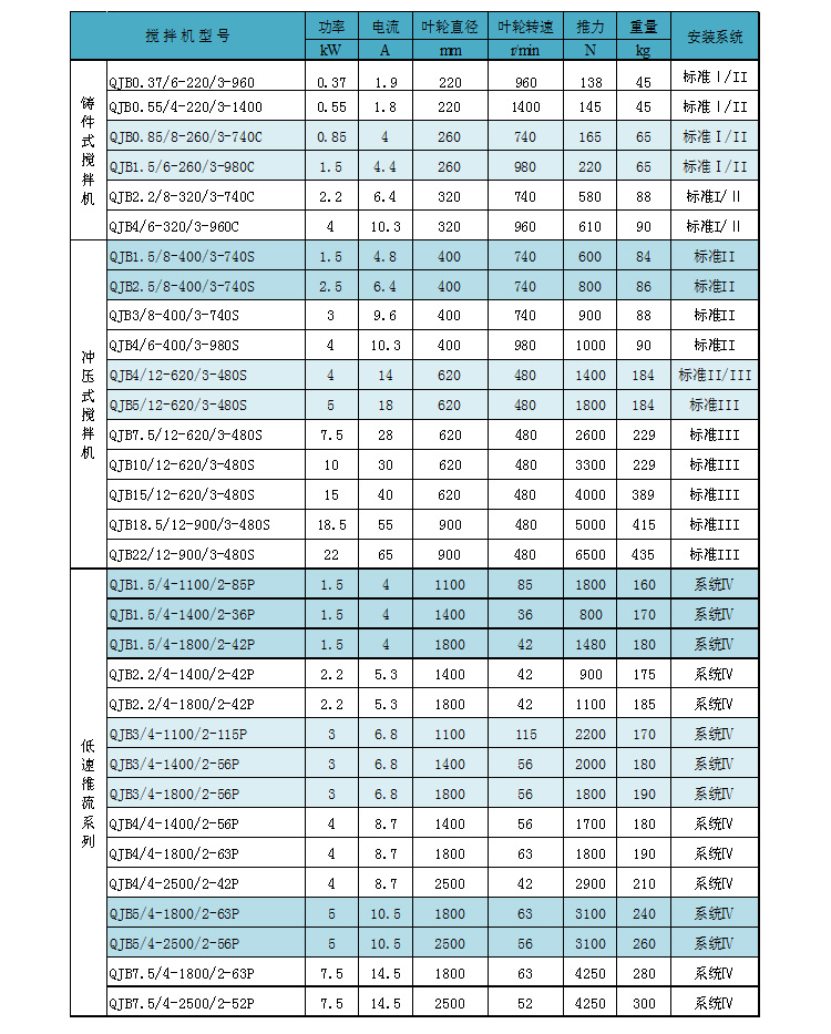 QJB型潛水?dāng)嚢铏C(jī)可分為混合攪拌和低速推流兩大系列。