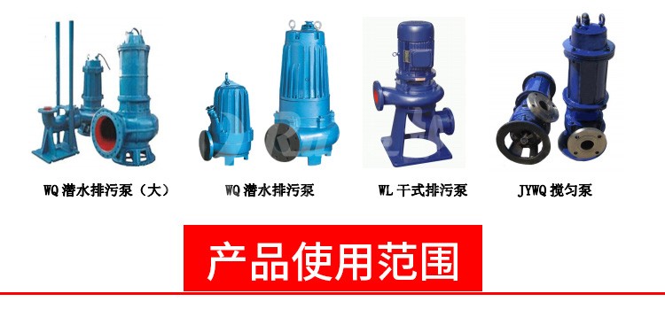 WQ 潛水排污泵,運(yùn)用于廣泛的給排水處理,提升工作效力。 WL 排污泵是在水面上立式安裝,使用干式電機(jī),以便于維護(hù) JYWQ 自動(dòng)攪勻泵是在 WQ 排污泵進(jìn)水端加了攪勻葉輪,一邊混合一