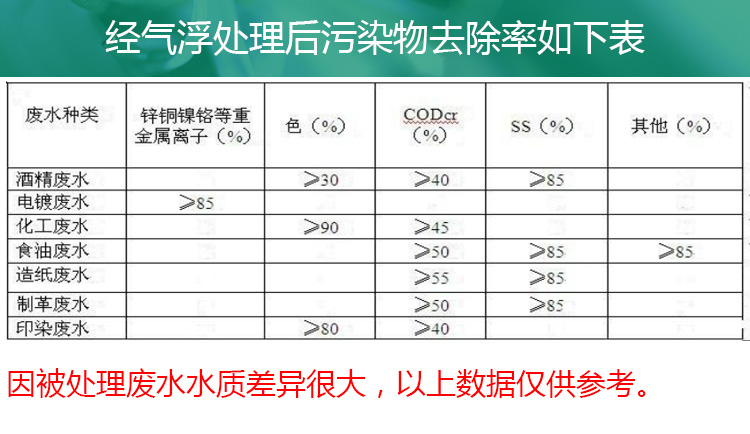 4、溶氣水:溶氣水先用自來(lái)水作回流水,正常后,改用處理后的清水作回流水。如廢水中洗滌劑量大,泡沫多,影響氣浮效果,可一直用清水。