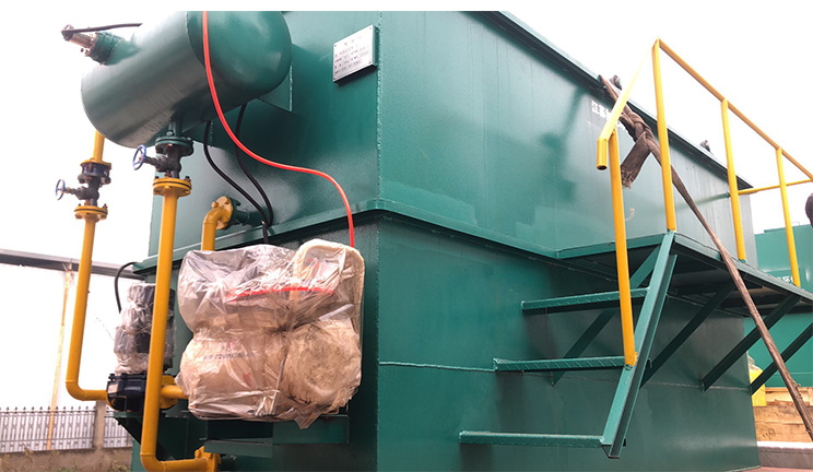 溶氣氣浮機(jī)主要用于固—液或液—液分離。通過(guò)溶氣和釋放系統(tǒng)在水中產(chǎn)生大量的微細(xì)氣泡,使其粘附于廢水中密度與水接近的固體或液體微粒上,造成整體密度小于水的狀態(tài),并依靠浮力使其上升至水面,從而達(dá)到固—液或液—液分離的目的。在水處理領(lǐng)域氣浮機(jī)應(yīng)用于以下方面:去除各種工業(yè)和市政污水中的固體懸浮物、油脂及各種膠狀物的設(shè)備。該設(shè)備廣泛應(yīng)用于煉油、化工、釀造、植物油生產(chǎn)與精煉、屠宰、電鍍、印染等工業(yè)廢水和市政污水的處理。