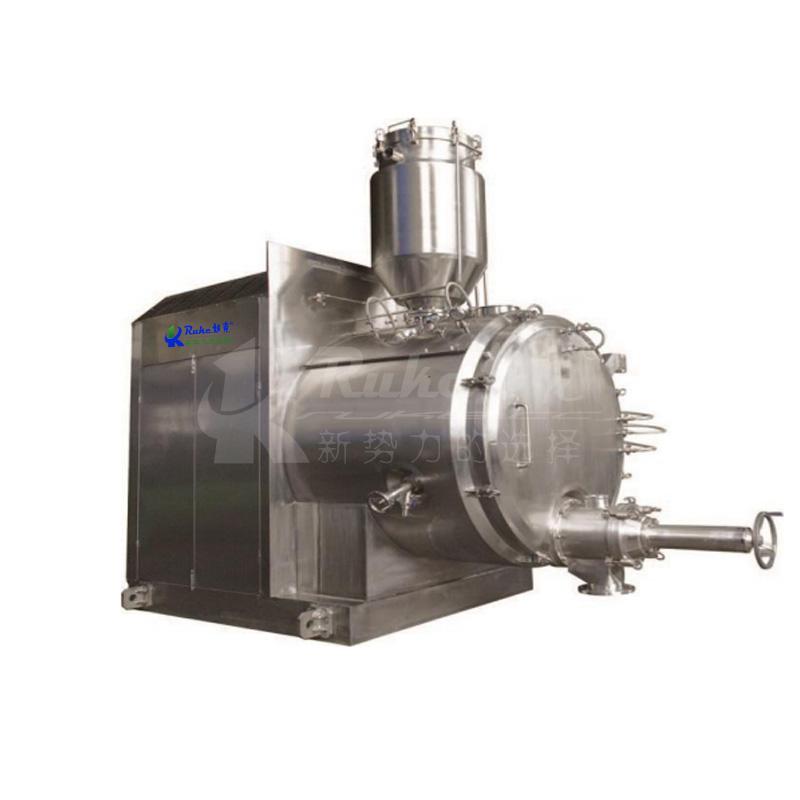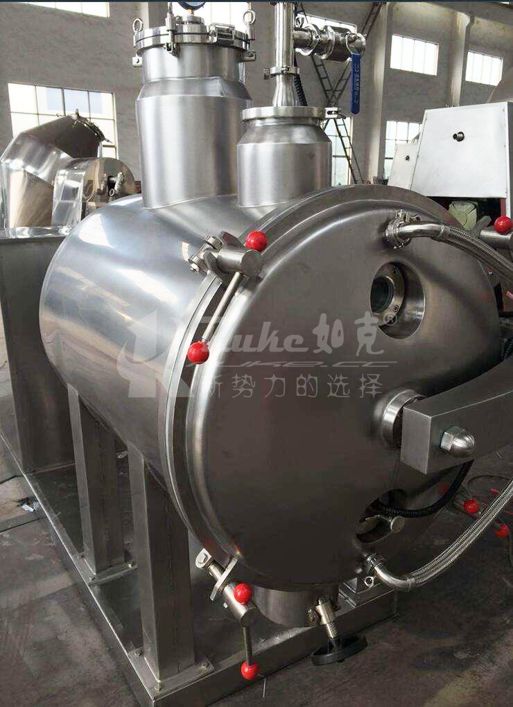 1、 裝載物料的筒體設(shè)置加熱夾套,夾套外部設(shè)置保溫層,防止熱量向環(huán)境擴散,減少熱損失;筒體下部設(shè)有卸料口,上部設(shè)有兩個加料口和一個排氣口,加料時,應(yīng)從兩個加料口同時等量加入;加料量為容積的 60%~80%,不得超過容積的 80%,否則將影響蒸發(fā)氣體的順利排出,當(dāng)所加載物料的粘性特強時,加料量應(yīng)適當(dāng)減少,以防止傳動電機過載、損壞設(shè)備。